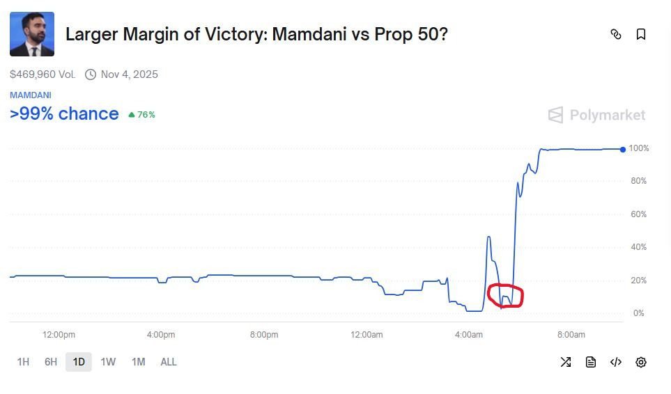 His trading record on the platform is mixed, filled with both impressive wins and unexpected losses. Yet one event changed everything for him, the legendary market “Larger Margin of Victory: Mamdani vs Prop 50?”