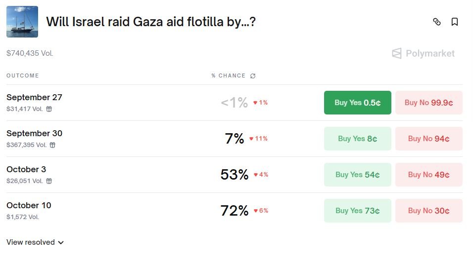 The central question for Polymarket traders is now captured in markets such as: Will Israel raid Gaza aid flotilla by ?